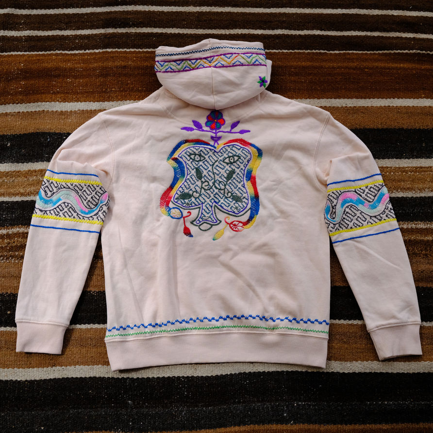 Sudadera con capucha color crema rosado