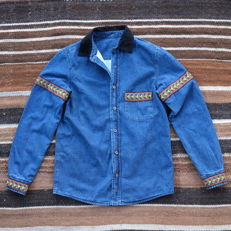 Denim Shirt Jacket - Dark Wash - Corduroy Collar