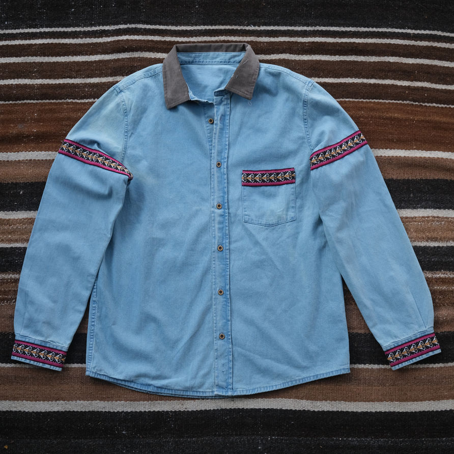 Denim Shirt Jacket - Light Wash - Corduroy Collar